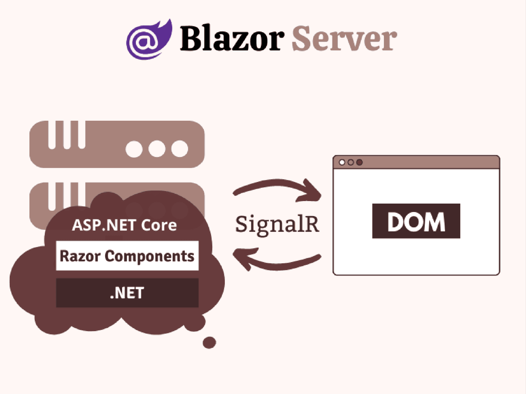 Blazor Server is a hosting model that executes components on the server from within an ASP.NET Core app. Here’s how it works: